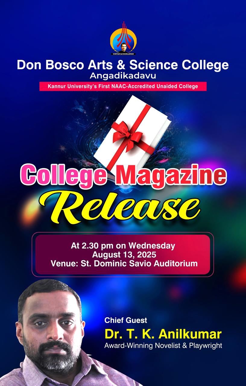 College Magazine 2024-25 will be released on 13-08-2025.Dr. T. K Anilkumar, award winning Novelist and Play writer will release the magazine.
