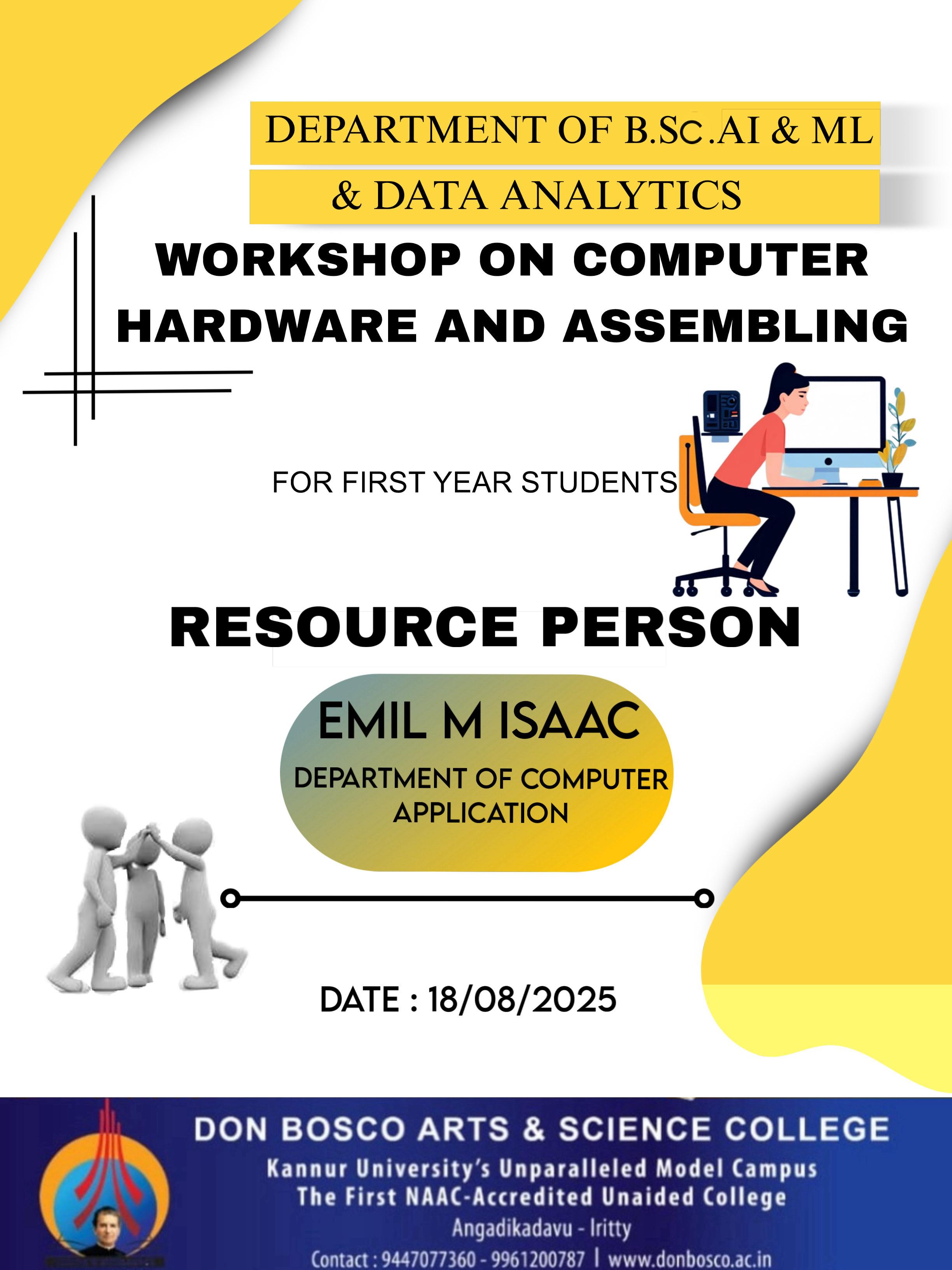 Department of Computer Application, Artificial Intelligence and Machine Learning is organising a Workshop on Computer Hardware & Assembling on 18-08-2025