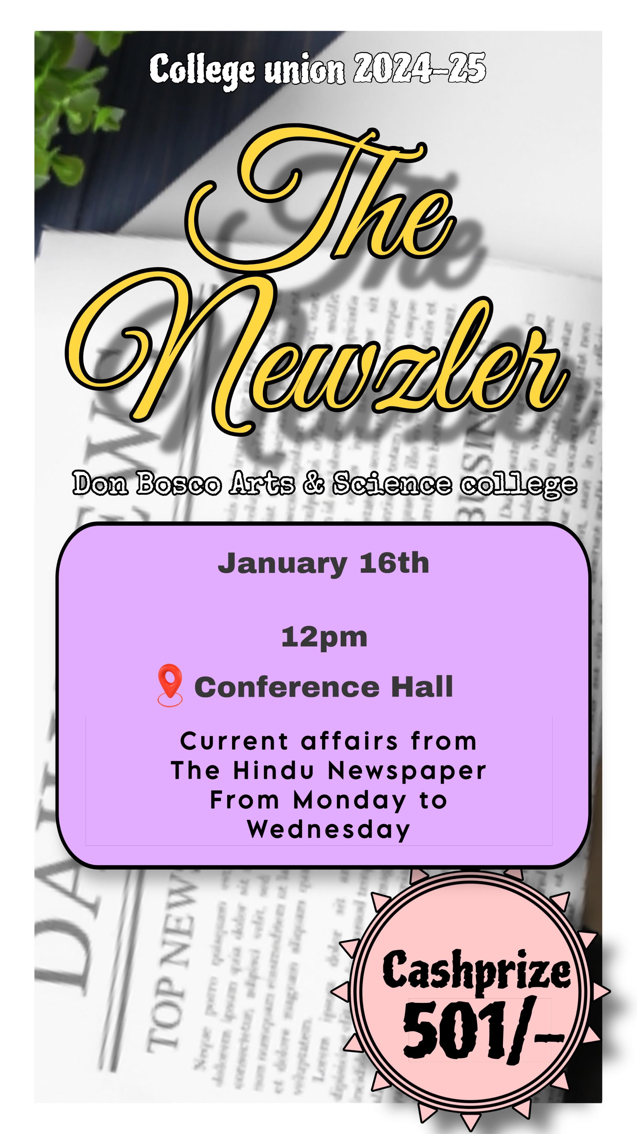'The Newzler' the quiz series organized by the College Union-2024-2025 will be conducted on 16-01-2025