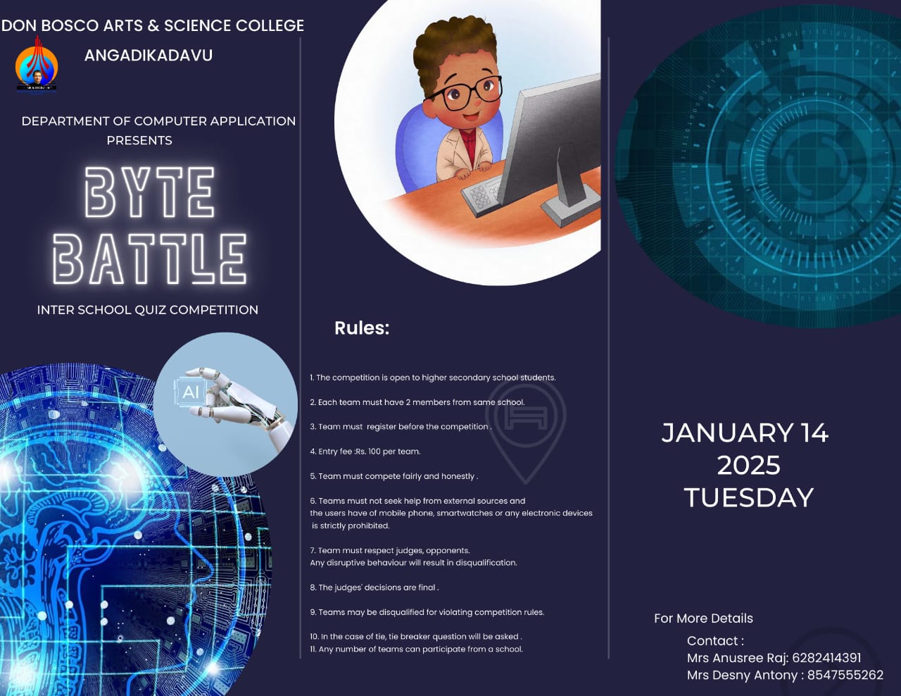Department of Computer Application organises a Quiz Competition for the School students to rise awareness among the school students about Artificial Intelligence. The programme will be held on 14 January ,2025.