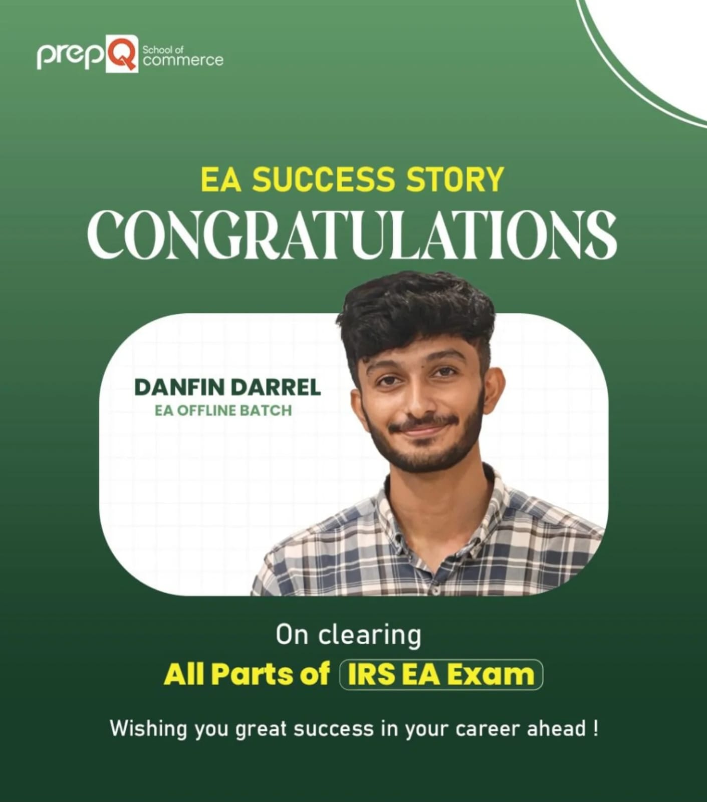 Danfin Darrel of BCom Finance 2022-25 batch cleared IRS EA Exam