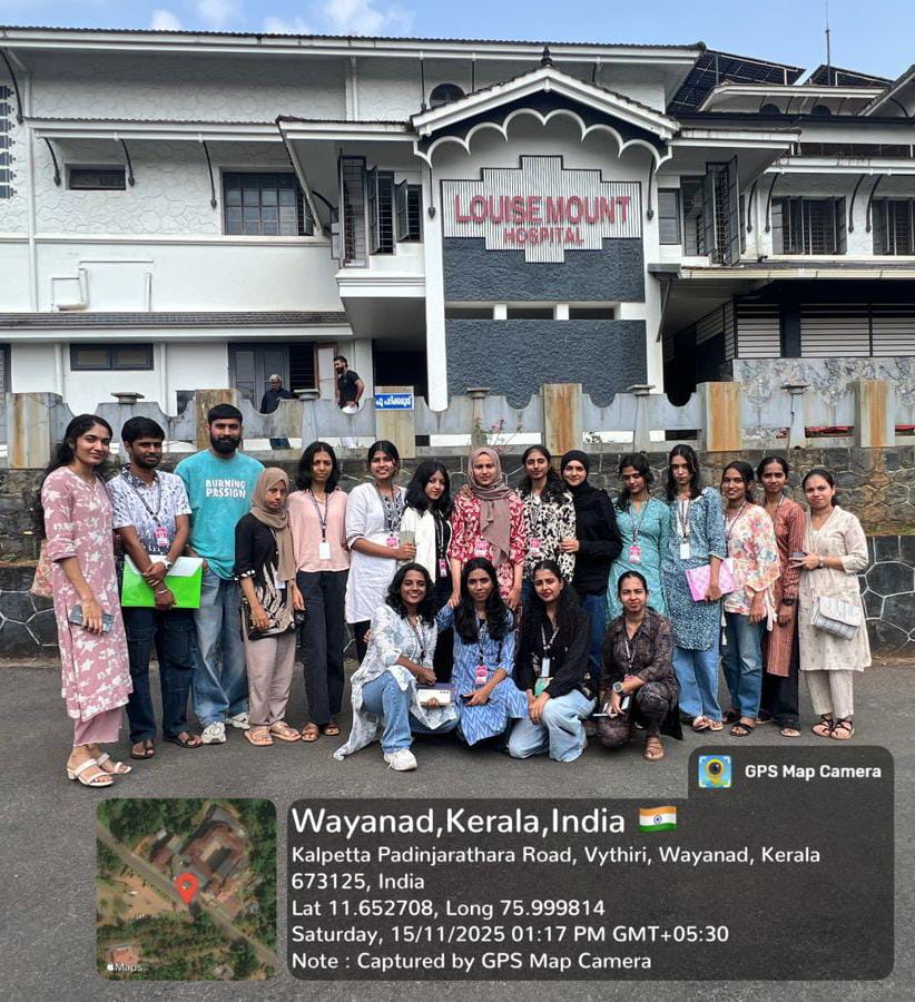 MSc Counseling Psychology students of Don Bosco Arts & Science College Angadikadavu visited five institutions - All India Institute of Speach and Hearing, JSS Hospital Mysuru, NIMHANS Bangalore, Louise Mount Hospital Wayanad and Peace Village Wayanad as part of their academic requirements