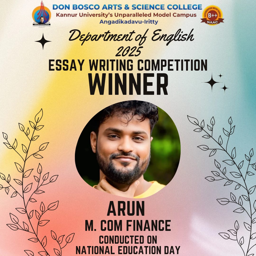 An Essay writing competition on the topic " Effectiveness of Implementing the National Education Policy-2020" was conducted by the Department of English on 12-11-2025, National Education Day. Mr. Arun, II year MCom Finance student won the first prize.